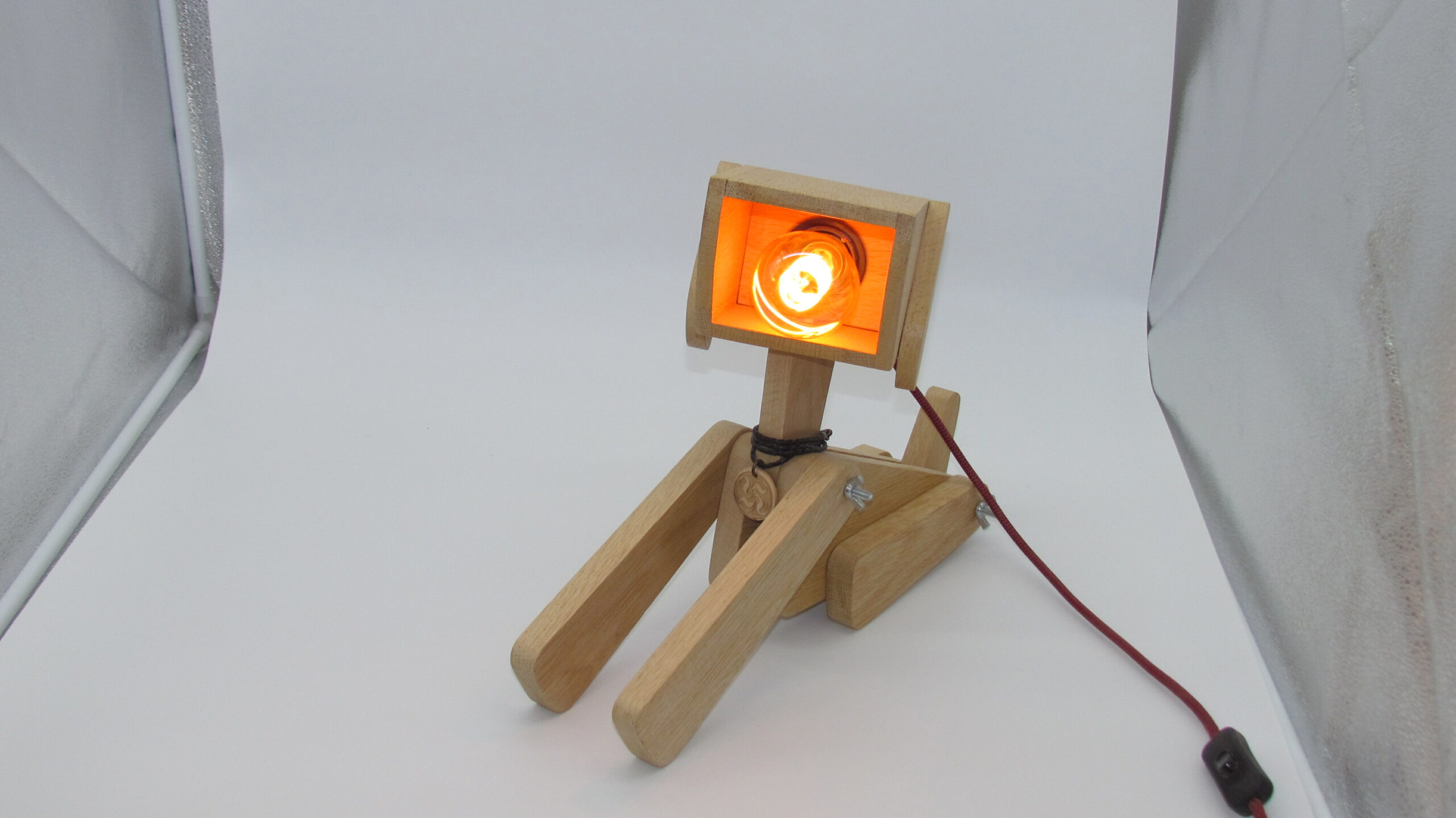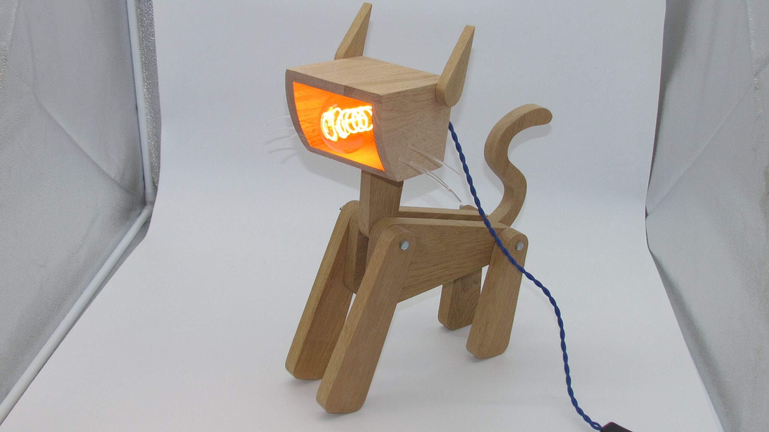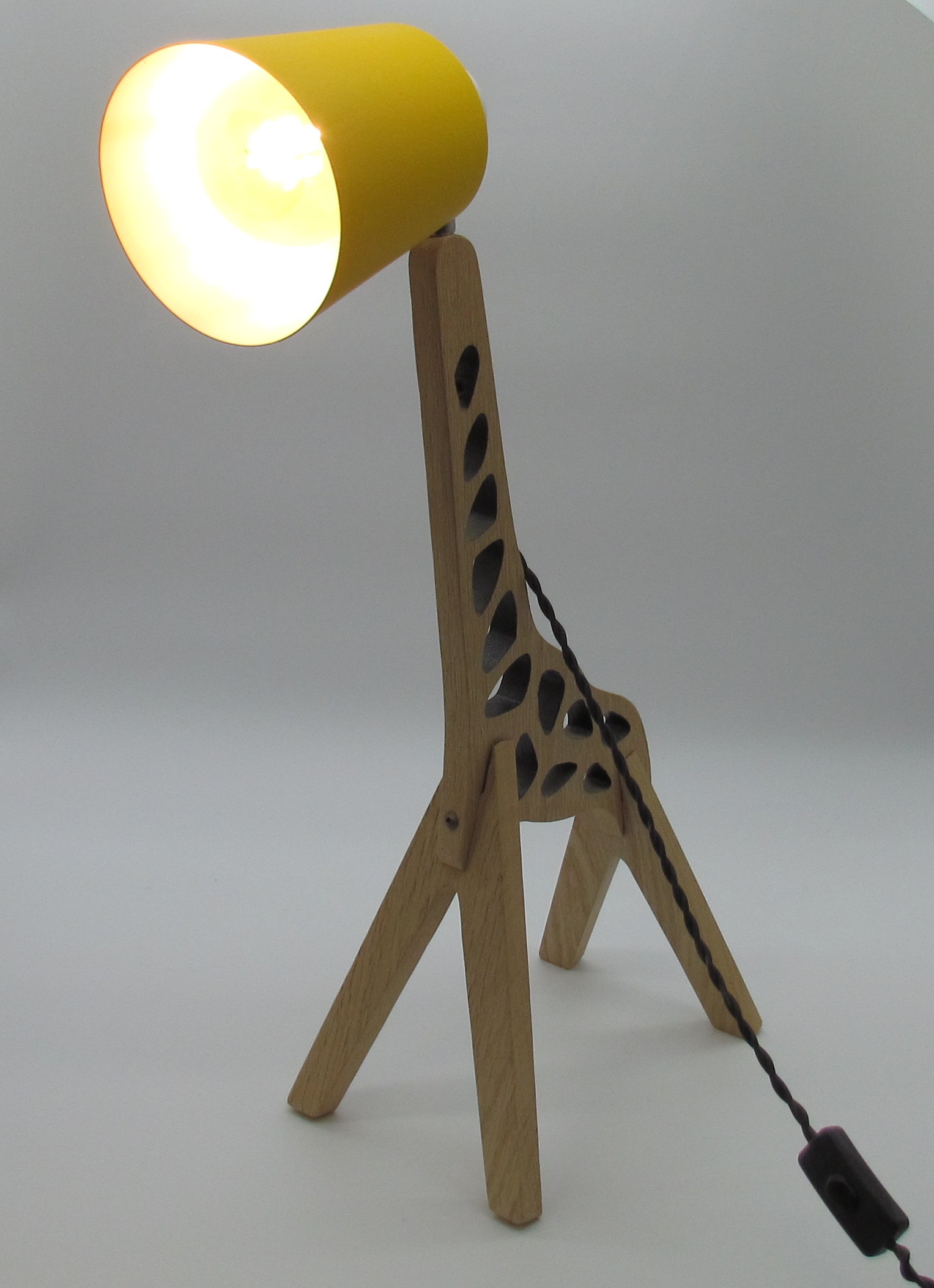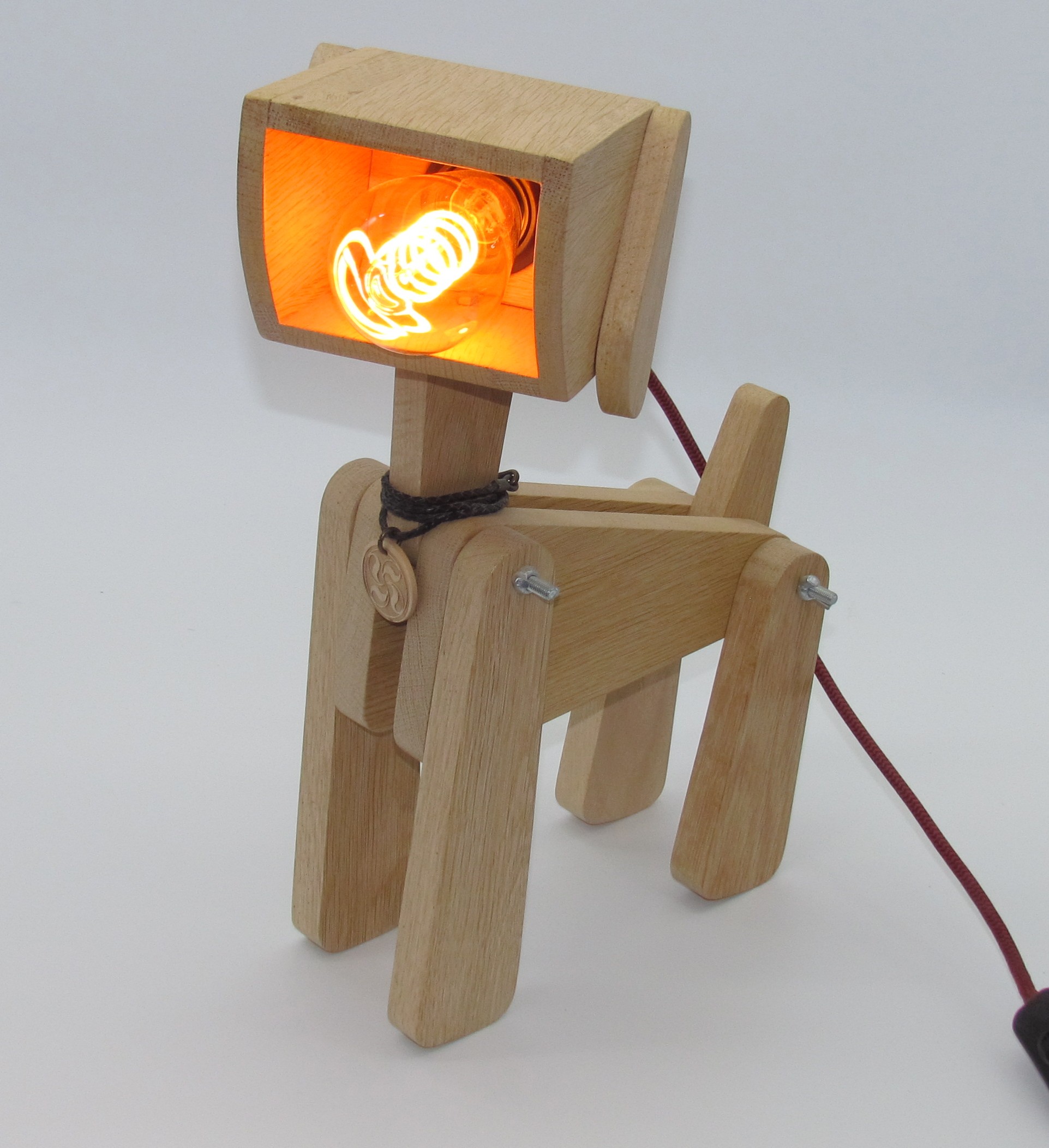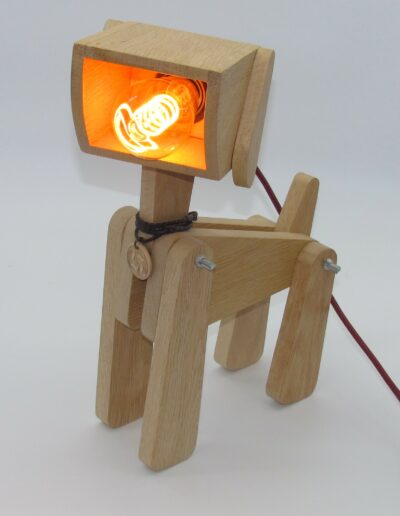 Lampe chien , chat ou girafe en chêne massif finition fond dur et vitrificateur Blanchon.